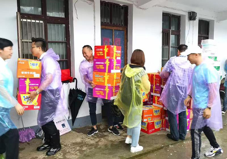 慰问组详细了解秋浦河汛情及群众受灾安置情况,并亲自搬运、为抗洪救灾一线的同志送上矿泉水、方便面、面包、火腿肠、毛巾等自发捐赠的价值近5000元的慰问物资。