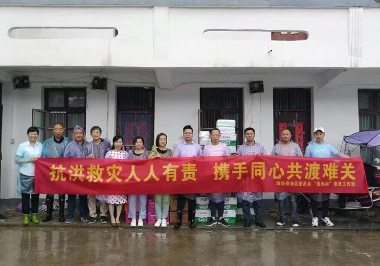 7月15日上午,池州市贵池区首家委员工作室——爱池尚委员工作室部分委员组成慰问组,冒雨来到秋江街道防汛救灾指挥部,慰问一线防汛抢险值守工作人员。