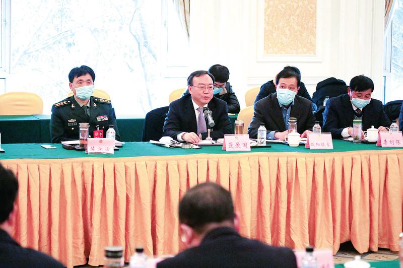 聂爱国在中共、无党派人士组与委员们一起讨论《政府工作报告》。