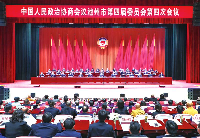 1月18日下午,在雄壮的国歌声中,政协池州市第四届委员会第四次会议圆满完成各项议程,在市委党校会议中心胜利闭幕。